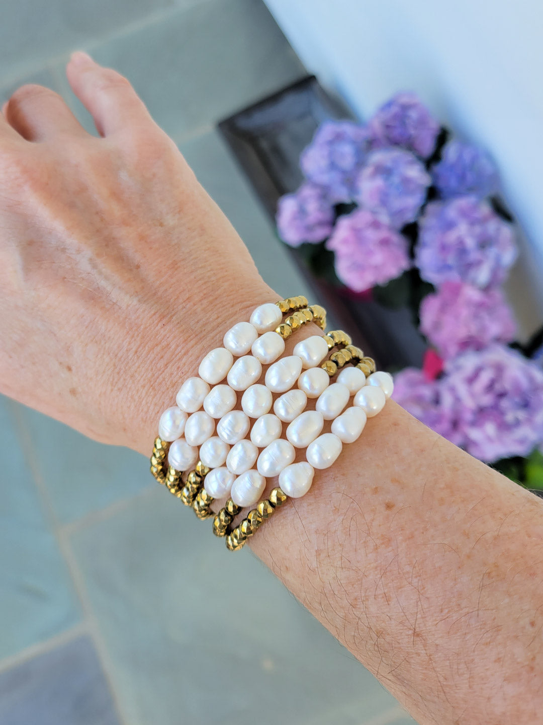 Where earth meets sea, strength meets grace. Each bracelet, crafted with hematite and luminous freshwater pearls, is a singular creation — just like every soul who wears it.